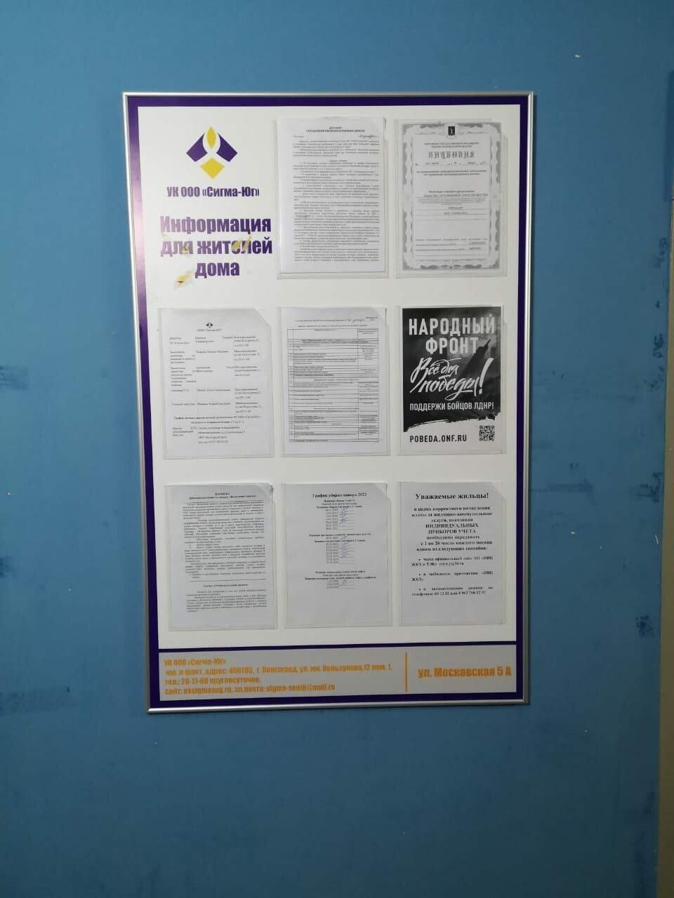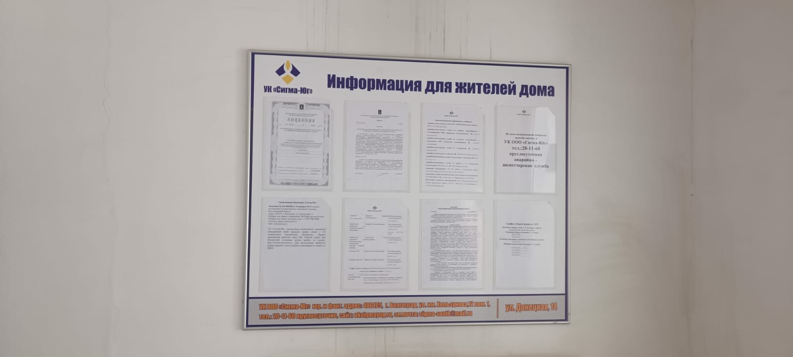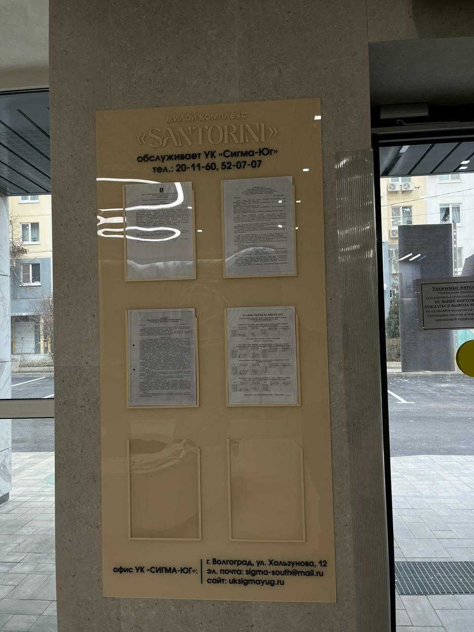 Дом перешёл на обслуживание в УК " Сигма-юг" с 1 марта 2023 года, отказавшись от услуг прежней УК " Зенит-Сервис", на основании решения общего собрания собственников помещений дома. Мы как новая управляющая компания данного дома, сразу же приступили к наведению порядка в содержании общедомового имущества: отмыли подъезд и лестничные клетки, восстанавливаем доводчики и уплотнения дверей, убираем и освещаем придомовую территорию. |